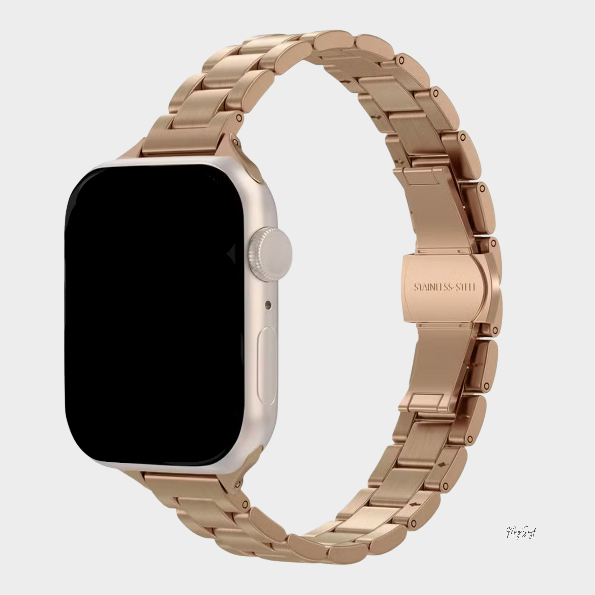 SlimLink is a refined stainless steel band designed to elevate your Apple Watch with a minimalist touch.