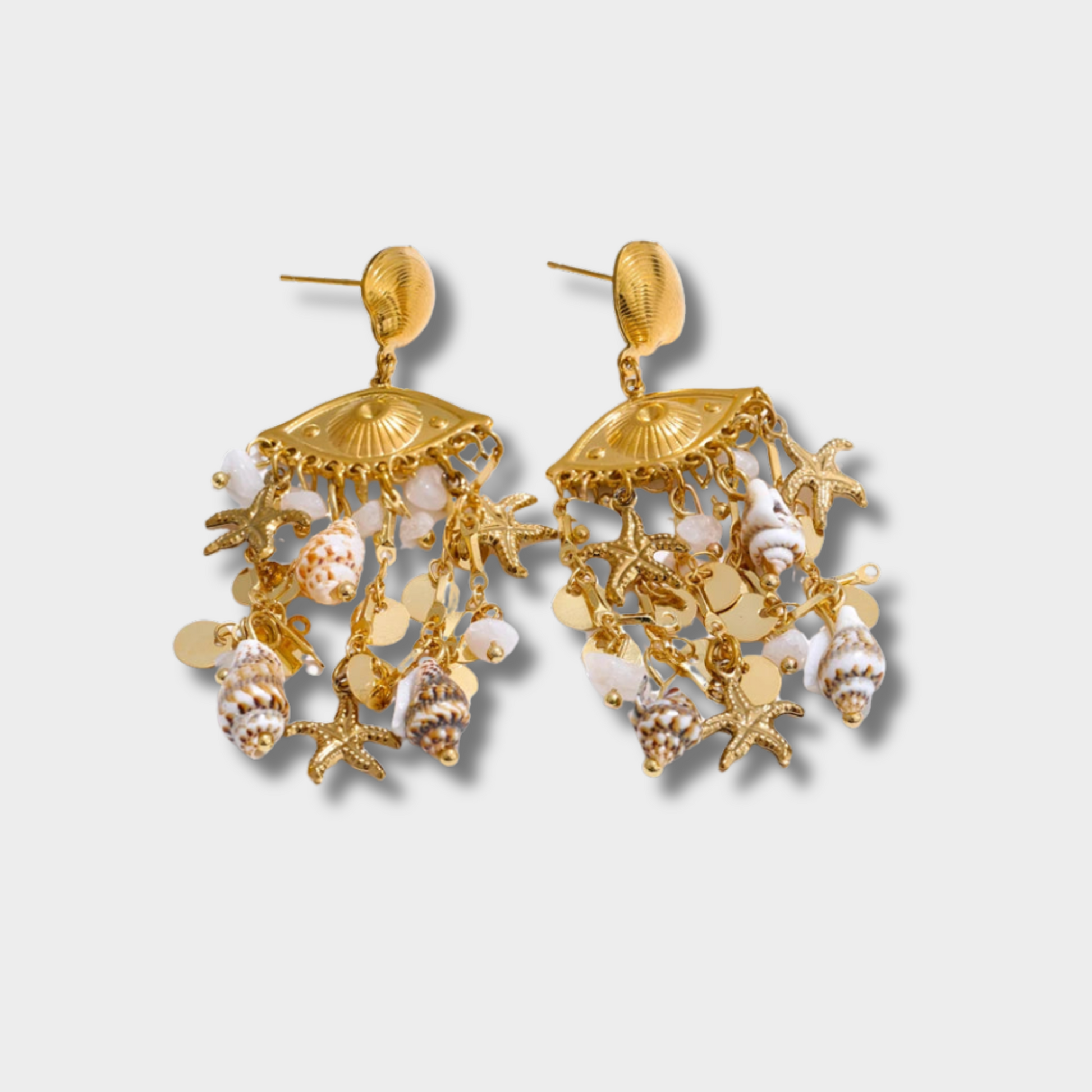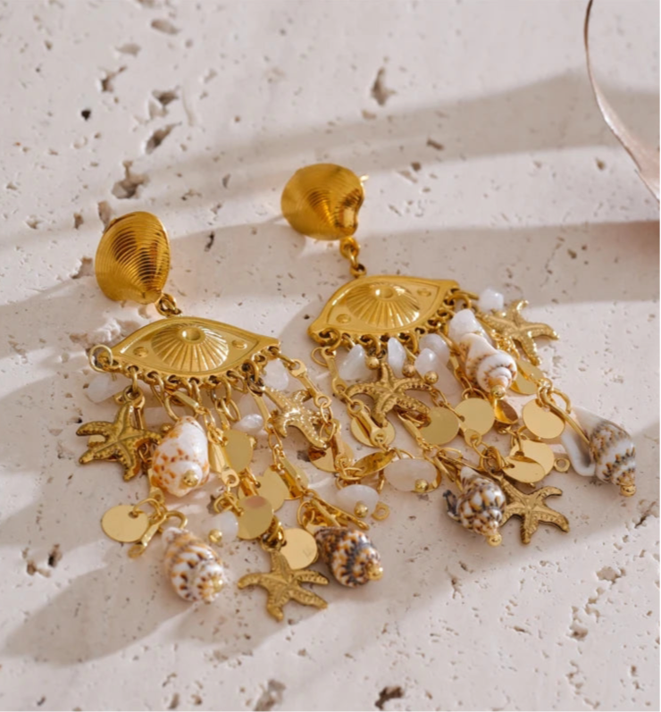 Our Beach Chunky Dream Earrings combine natural shells, stones, and luxe gold plating into the perfect statement piece. Lightweight yet bold — these earrings are made to shine under the sun and beyond. Whether you’re brunching by the coast or dancing the night away, you’ll steal the show!